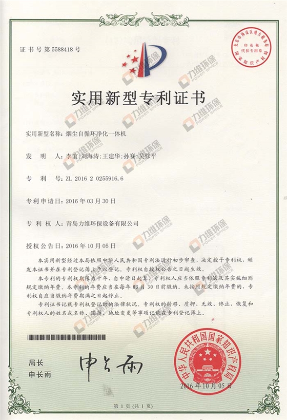力维国家专利——烟尘自循环净化一体机