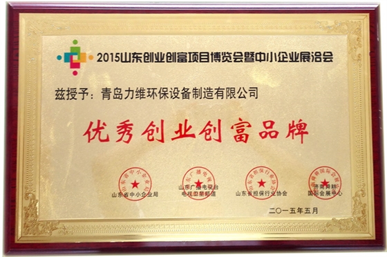 今年五月,青岛力维环保在山东创业创富项目博览会上,凭借过硬的技术实力、良好的市场口碑、以及积极严谨的企业文化和精神,荣获了本次展会中优秀创业创富品牌。