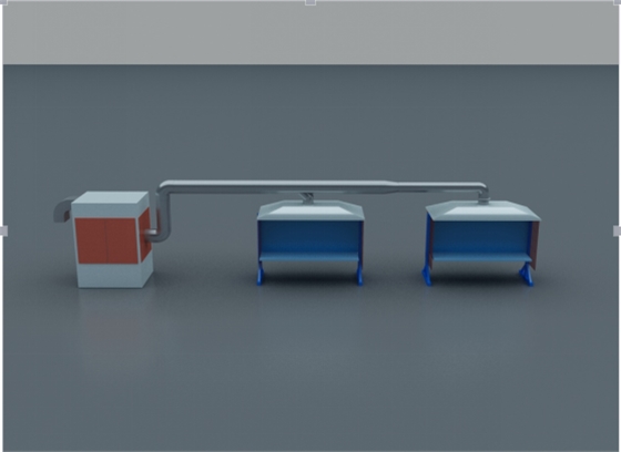 吸气罩和管道采用镀锌板材,吸气罩的板材为国标厚底,螺旋风管的厚度为0.6-0.8mm。焊烟净化器主机连接2个工作台,工作台台面为Q235国标碳钢,工作台面全有激光切割成大小一致的孔径。力维环保技术人员为整个3米*1米的铝材焊接设计的焊接烟尘净化器整体方案效果图如下:力维环保专业技术团队赢得了客户的一致好评,解决了客户铝型材焊接中烟尘粉尘治理不彻底问题。