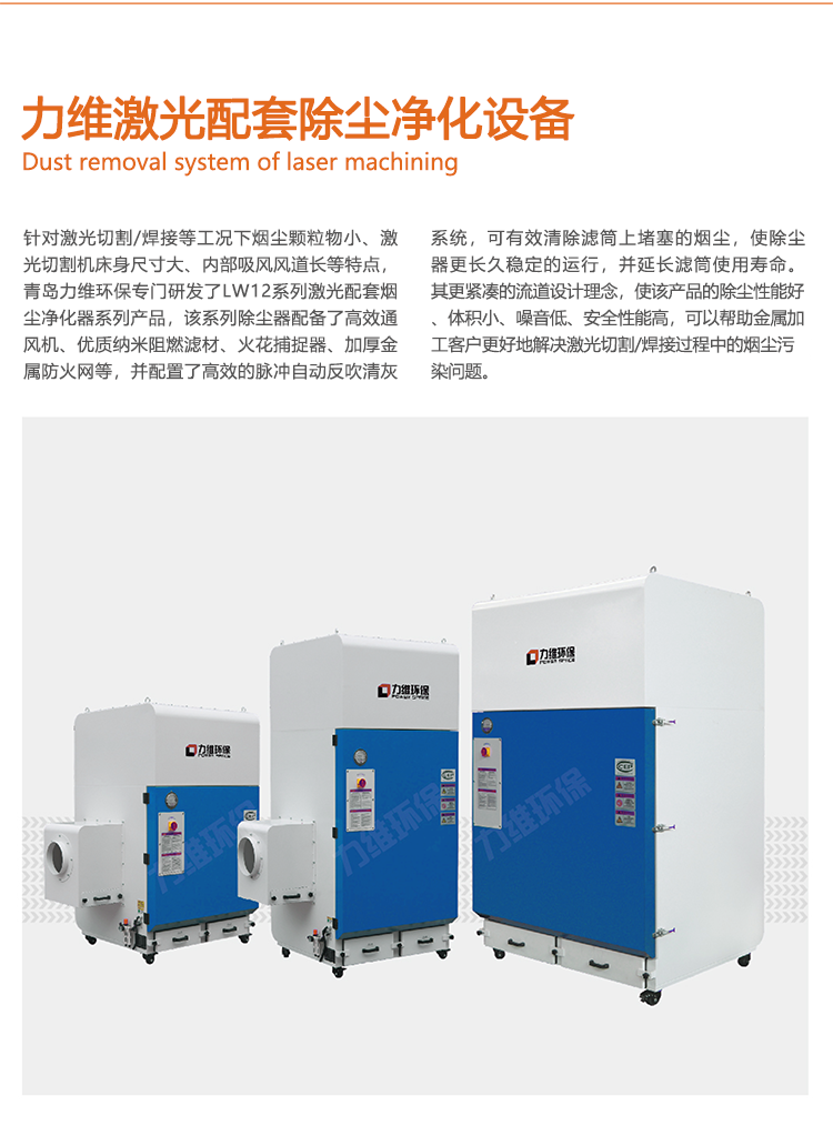 青岛力维环保科技有限公司是一家从事焊接烟尘、激光切割烟尘、打磨粉尘净化设备等工业除尘设备的研发、制造和销售为一体的企业。力维环保作为国家高新技术企业和青岛市重点研发中心培育基地,是青岛大学和青岛科技大学校企合作单位,有自己的研发制造基地。 同时在北京、上海、天津、重庆、成都、西安、常州、大连、长春设有分支服务机构。