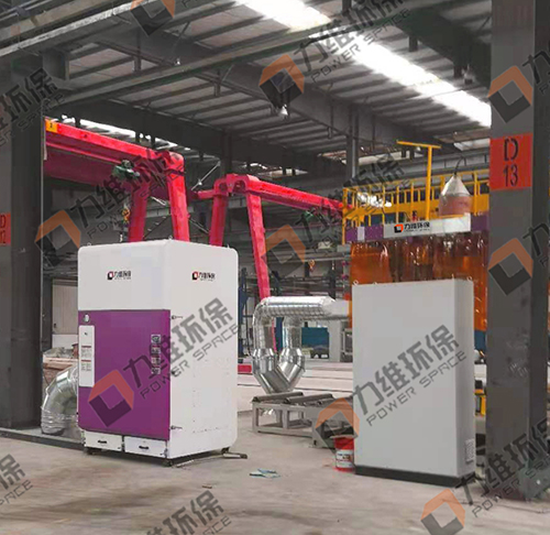 据悉,该客户车间共4个机器人焊接工位。经青岛力维环保多次现场实地勘测,并结合客户要求及现场实际工况,为该企业设计研发了此款机器人焊接除尘设备,该款设备适用于多种尺寸的机器人焊接设备,可以安装在车间支架上或悬吊在可移动的机器人龙门架上。